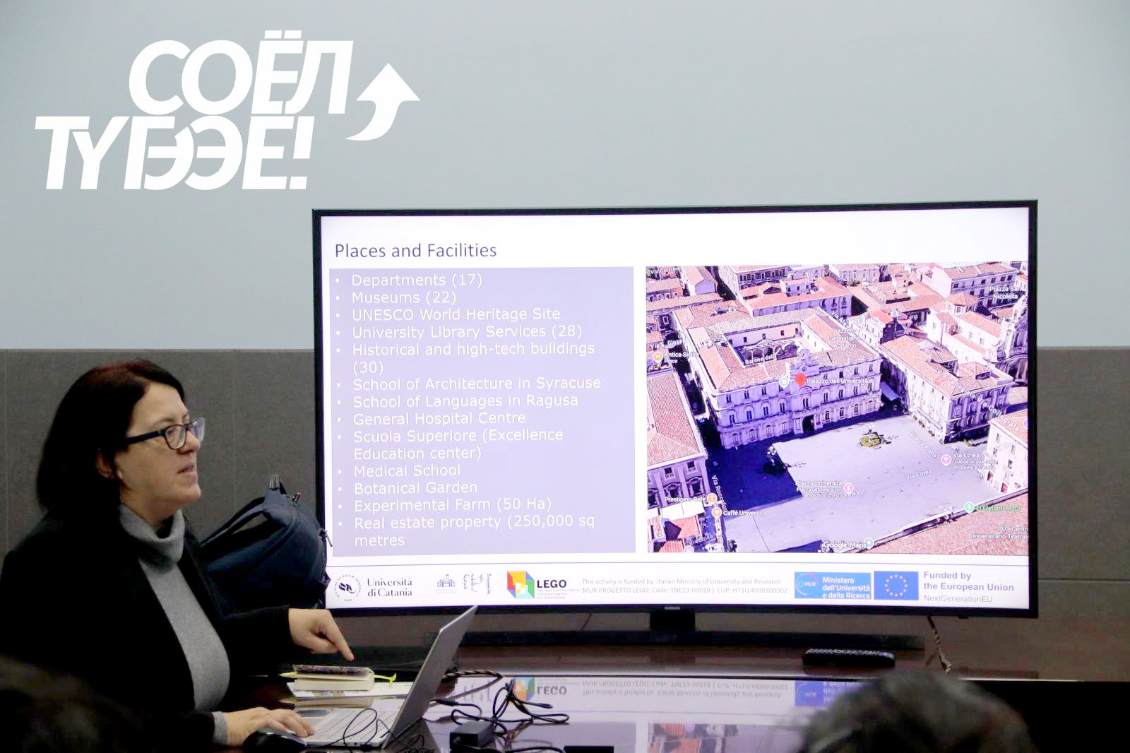 Италийн Катаниагийн их сургуулийн профессор Четтина Сантагати 2025 оны 10 дугаар сарын 17-ны өдөр Соёлын өвийн үндэсний төвтэй танилцаж, төсөл хөтөлбөр, судалгаа шинжилгээний чиглэлээр хамтран ажиллах боломжийн талаар санал солилцож, Сэргээн засварлах газар, Хадгалалт, хамгаалалт, технологи судалгааны газрын мэргэжилтнүүдэд “Соёлын биет өвийг танин мэдэх, хамгаалах ба өгүүлэхэд дижитал технологийг хэрэглэх нь” (Integrated Digital Approaches for the Knowledge, Conservation, and Narration of Tangible Cultural Heritage) сэдэвт сургалт зохион байгууллаа.