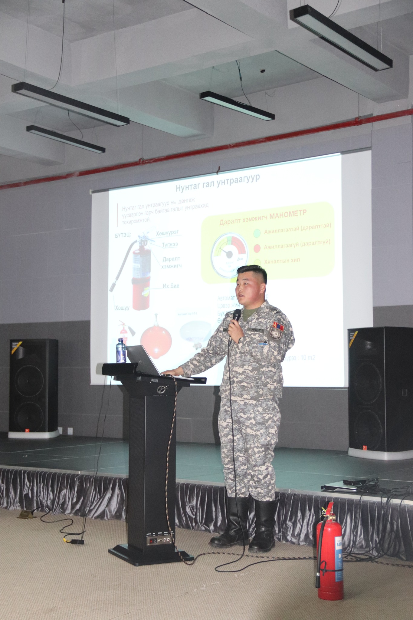 Галын аюулгүй байдлын тухай хуулийн 17 дугаар зүйлийн 17.2.4 дэх заалт “Ажилтан, алба хаагчийг гал түймрээс урьдчилан сэргийлэх, авран хамгаалах, гал түймэр унтраах арга ажиллагаанд сургах, мэдлэгийг нь дээшлүүлэх арга хэмжээг авч хэрэгжүүлэх”, Байгууллагын 2025 оны гүйцэтгэлийн төлөвлөгөөний 4.3.3 дахь арга хэмжээ “Хөдөлмөрийн аюулгүй байдал, эрүүл ахуйн тухай хууль, Гамшгаас хамгаалах тухай хуулийн хэрэгжилтийг тус тус хангаж, мэргэжлийн байгууллагатай хамтарч ажиллах” ажлыг хэрэгжүүлэх хүрээнд 2025 оны 10 дугаар сарын 21-ний өдөр Хан-Уул дүүргийн Онцгой байдлын хэлтсийн Гал түймэр унтраах, аврах 30 дугаар ангийн хамт олон "Гал түймрийн аюулаас урьдчилан сэргийлэх эрсдэлийг бууруулах" сэдвээр сургалт зохион байгууллаа.