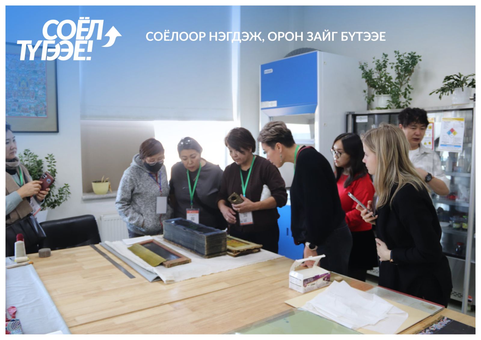 Оросын Холбооны Улсын Николаевна В.А.Обручевын нэрэмжит Хиагтын Орон нутгийн музейн сан хөмрөгийн ерөнхий эрхлэгч Райцанова Эльвира тэргүүтэй мэргэжилтэн, албан хаагч нар 2025 оны 10 дугаар сарын 07, 08-ны өдрүүдэд Соёлын өвийн үндэсний төвийн соёлын биет өвийн хадгалалт хамгаалалтын шинжлэх ухааны олон талт суурь судалгааны аргазүй, сэргээн засварлалтын технологийн чиглэлээр туршлага солилцож, хамтын ажиллагааны хүрээнд төрөлжсөн урлан лабораторитой танилцаж, цаашид хамтран ажиллах чиглэлээр ажлын уулзалт зохион байгууллаа.