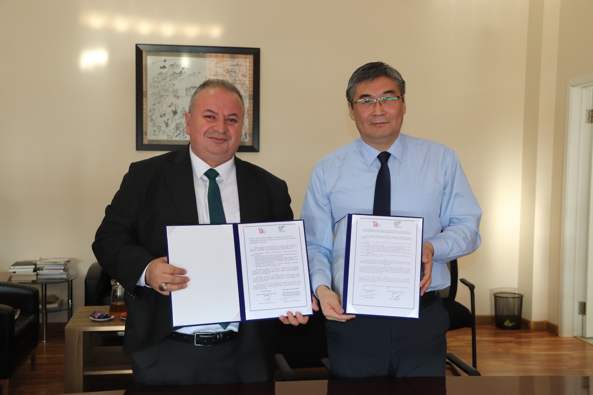 Соёлын өвийн үндэсний төвийн захирал, доктор Г.Энхбат, Турк Улсын Археологи ба Соёлын өвийн хүрээлэнгийн ерөнхийлөгч проф, доктор Шабан Доган нарын байгуулсан энэхүү санамж бичгээр талууд Туул голын хөндийн эртний түрэгийн үеийн дурсгалт газруудад этно-археологи, уур амьсгалын өөрчлөлт, түүх соёлын үл хөдлөх дурсгалын хадгалалт, хамгаалалт, эрсдэлийн чиглэлээр хамтарсан төсөл хэрэгжүүлэхээр санал нэгдлээ.