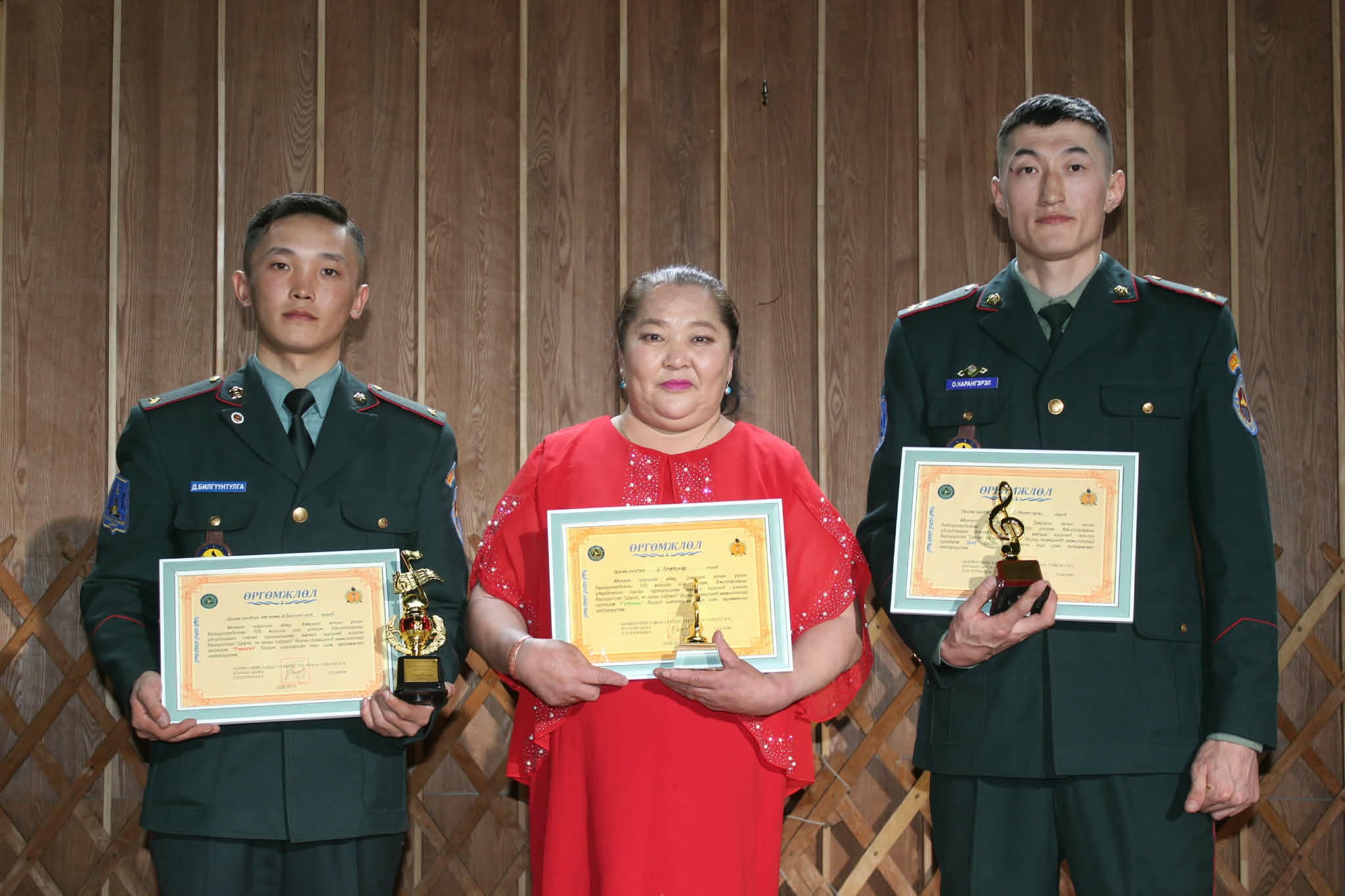 Соёлын өвийн үндэсний төвийн "Өв эрдэнэ" театрыг түшиглэн зохион байгуулсан хоёр үе шаттай энэхүү тэмцээнд оролцогчид цэргийн болон эх орны сэдэвтэй дуунуудаар өрсөлдсөн бөгөөд нийлбэр дүнгээр тэргүүн байрт дэд ахлагч Д.Билгүүнтулга, дэд байрт ахлагч О.Нарангэрэл, гутгаар байрт энгийн Ц.Заяабаяр тус тус шалгарч өргөмжлөл, цомоор шагнууллаа.