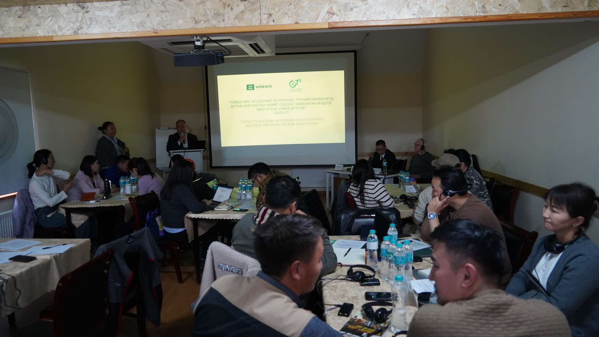 Сургалтад Соёл, спорт, аялал жуулчлал, залуучуудын яам, Байгаль орчин, уур амьсгалын өөрчлөлтийн яам, Засгийн газрын хэрэгжүүлэгч агентлаг Соёл урлагийн газар, Соёлын өвийн үндэсний төв, Гамшиг судлалын үндэсний хүрээлэн, Нүүдлийн соёл, иргэншлийг судлах Олон Улсын хүрээлэн, Соёл урлагийн их сургууль, Хөдөө аж ахуйн их сургууль, ДӨ-Бурхан Халдун уул, түүнийг хүрээлсэн тахилгат газар нутгийн хамгаалалтын захиргаа, ДӨ-Орхоны хөндийн соёлын дурсгалт газрын хамгаалалтын захиргааны холбогдох мэргэжилтэн, албан хаагчид, 21 аймгийн Соёл урлаг, аялал жуулчлал, залуучуудын газрын мэргэжилтнүүд танхим болон цахимаар оролцож байна.