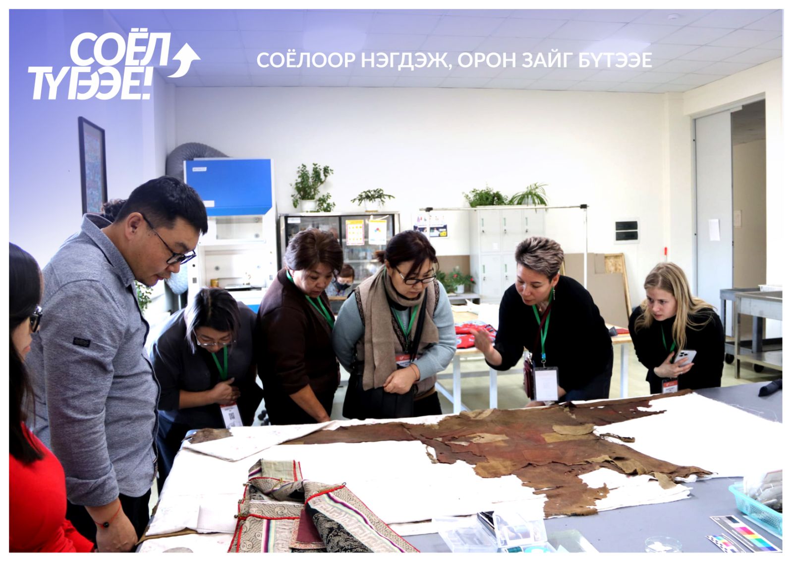 Оросын Холбооны Улсын Николаевна В.А.Обручевын нэрэмжит Хиагтын Орон нутгийн музейн сан хөмрөгийн ерөнхий эрхлэгч Райцанова Эльвира тэргүүтэй мэргэжилтэн, албан хаагч нар 2025 оны 10 дугаар сарын 07, 08-ны өдрүүдэд Соёлын өвийн үндэсний төвийн соёлын биет өвийн хадгалалт хамгаалалтын шинжлэх ухааны олон талт суурь судалгааны аргазүй, сэргээн засварлалтын технологийн чиглэлээр туршлага солилцож, хамтын ажиллагааны хүрээнд төрөлжсөн урлан лабораторитой танилцаж, цаашид хамтран ажиллах чиглэлээр ажлын уулзалт зохион байгууллаа.